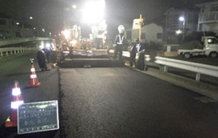 人や車が安全に通行できるように、道路の地盤面にアスファルトやコンクリートを敷き固める工事です。水道工事跡の道路復旧工事も舗装工事になります。