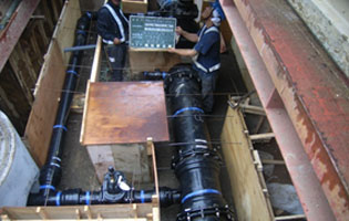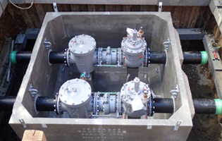 高圧の水流を各家庭での使用に適した圧力に下げる働きをする弁を設置する工事です。